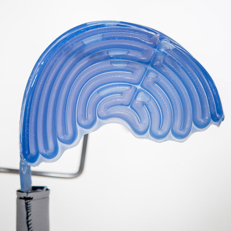 Un liquide de refroidissement traverse le casque pour extraire la chaleur du cuir chevelu du patient.
